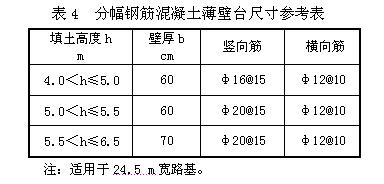 平原區(qū)填土高度h≤6.5 m的小橋,可采用薄壁臺,軟基段宜控制在6.0 m以下?,F(xiàn)運營的高速路中有些薄壁臺出現(xiàn)開裂現(xiàn)象,設計時應特別引起注意。