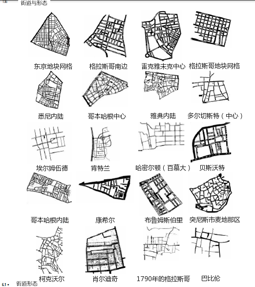 另一些分類法模式側(cè)重于城市街道的形態(tài)學(xué),馬歇爾在《街道與形態(tài)》里對此有詳細論述:
