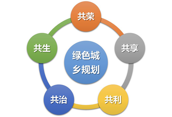 綠色城鄉(xiāng)規(guī)劃的目標(biāo):建設(shè)“共生、共榮、共享、共利、共治”的理想社會。