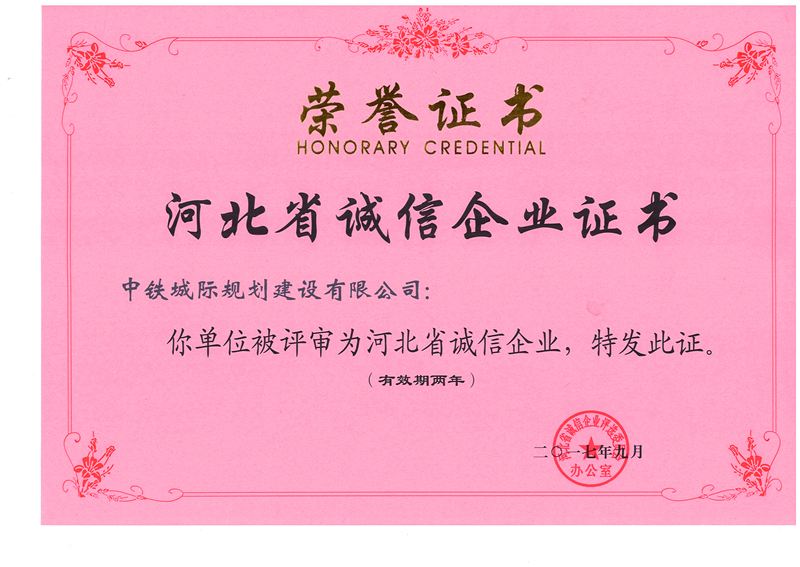長期以來,中鐵城際規(guī)劃建設(shè)有限公司始終高度重視契約精神,守法經(jīng)營、守合同重信用,以誠信經(jīng)營促進企業(yè)的發(fā)展壯大。