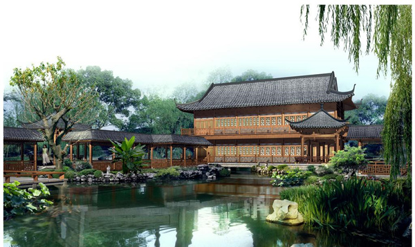 (2)尊重自然,追求天人合一的藝術效果。中國傳統(tǒng)園林設計思想的根本特征是“自然”,諸如“有若自然”、 “妙在自然”、 “宛若自然”之吾,和傳統(tǒng)繪畫藝術一樣,中國古典園林也是要求“外師造化,中得心源”,力求營造出人與自然和諧共處的園林景致。