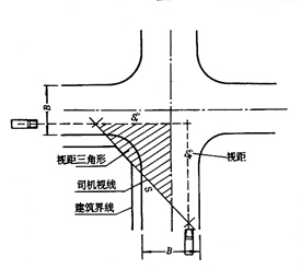 兩條道路以銳角或鈍角斜交;當(dāng)相交銳角較小時(shí),形成狹長(zhǎng)形交叉口,不利于交通組織(特別是左轉(zhuǎn)交通),街角建筑難以處理,應(yīng)盡量避免這種形式。當(dāng)斜交不可避免時(shí)其交角應(yīng)>45度。為保證城市交通暢通,場(chǎng)地內(nèi)道路與城市道路相接時(shí)其交角不宜小于75度。