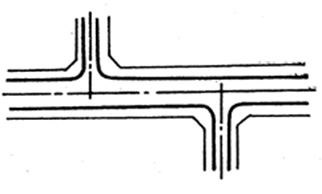 T字形交叉口的變化,交叉口之間的距離應(yīng)大一些,否則將影響主干道上的車(chē)速。