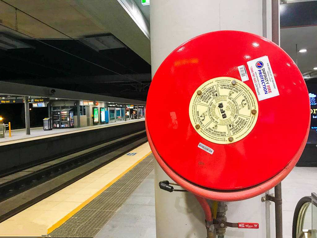 站臺(tái)要做消火栓,相當(dāng)于室外消火栓,并且要放置滅火器?,F(xiàn)在有些站的站臺(tái)會(huì)用推車式的細(xì)水霧裝置代替滅火器。