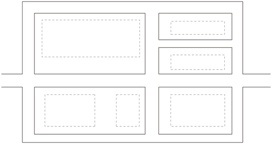 道路主要平行于主要建筑、構(gòu)筑物,圍繞各庫房進(jìn)行布置,這種道路布置形式受地形條件限制,一般不宜在山區(qū)丘陵地區(qū)采用,且道路的總長度及占地較多,對(duì)于交通繁忙、車流和人流組織需要分離的采用,如圖所示。