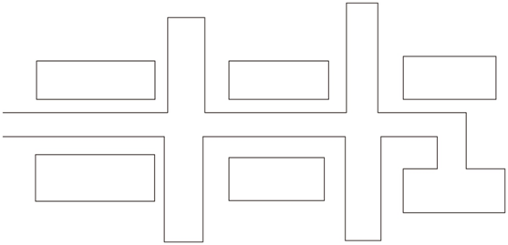 混合式布置形式同時(shí)具有環(huán)狀式和盡頭式兩種布置形式的特點(diǎn)。在滿足運(yùn)輸?shù)囊髼l件下,既能兼顧貨流、人流的通暢。又能較好的適應(yīng)廠區(qū)地形、地質(zhì)條件。其布置形式比較靈活,可適用于各種類型的企業(yè),如圖所示。