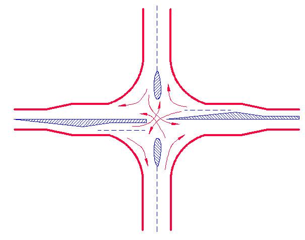 適當(dāng)布置交通島限制行車路線,使車流按一定組織方式通過交叉口,把沖突限制在一定范圍內(nèi);