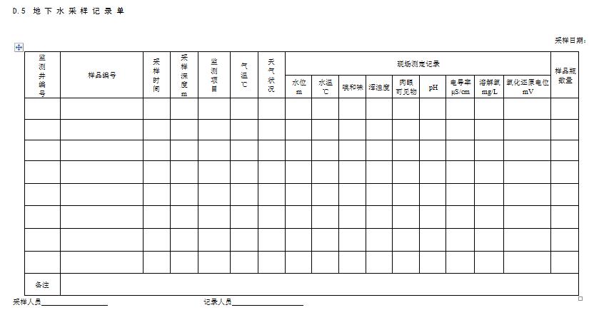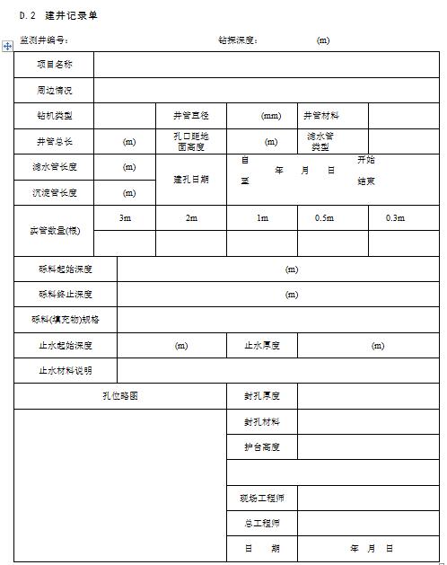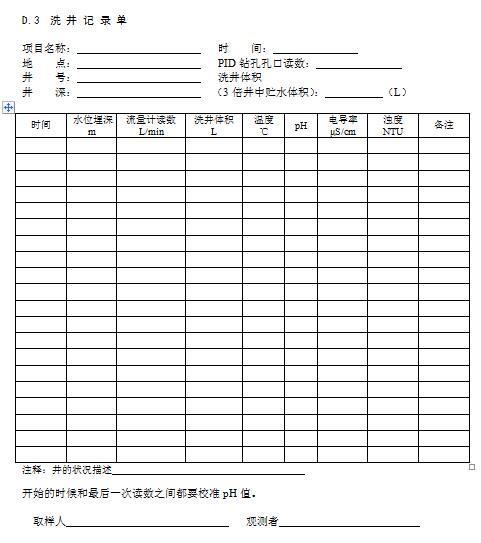 現(xiàn)場記錄宜使用專門的記錄單,現(xiàn)場記錄單包括:鉆孔記錄單、采樣日志和監(jiān)測井建井記錄單、洗井記錄單和水位觀測記錄單等等。