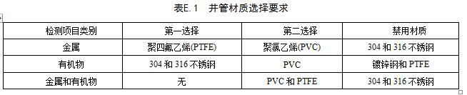 井管材質(zhì)因檢測項目的不同而有所差異,各類檢測項目的材質(zhì)選擇見表E.1。