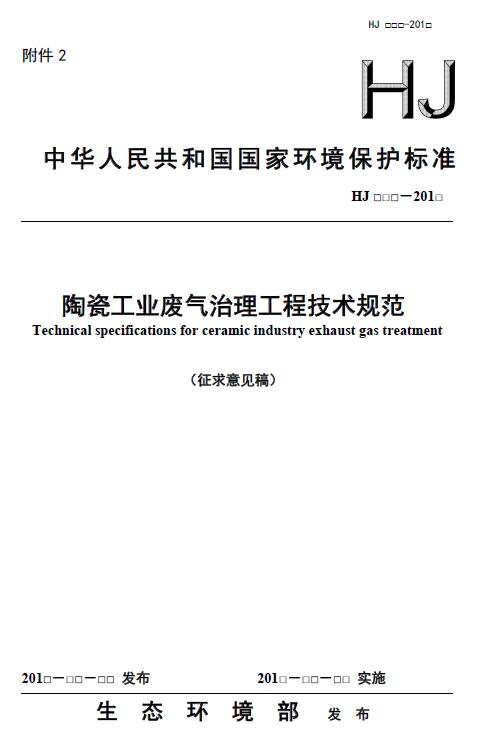 為貫徹《中華人民共和國(guó)環(huán)境保護(hù)法》和《中華人民共和國(guó)大氣污染防治法》等法律法規(guī),防治環(huán)境污染,改善大氣環(huán)境質(zhì)量,規(guī)范陶瓷工業(yè)廢氣治理工程的建設(shè)與運(yùn)行管理,我部決定制定《陶瓷工業(yè)廢氣治理工程技術(shù)規(guī)范》。