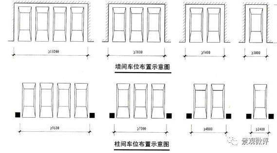 1)單建式地庫,停放小型車時不宜采用兩柱間停一輛車的方式,避免柱子過多;而附建式地庫,有時因上部建筑柱網(wǎng)尺寸較小,兩柱間可能停放一輛車。