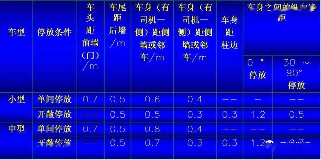 如果實際存車同上述尺寸存在著差異,則必須按實際車型進行設(shè)計。
