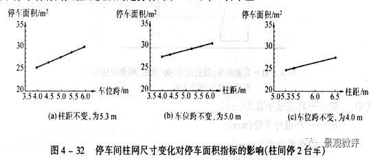實踐表明,柱間距、車位及通道跨度三者之間有一定的關(guān)系,并影響停車面積。