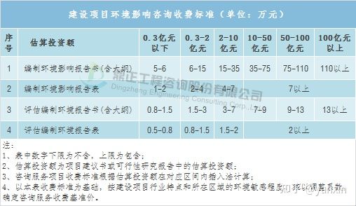 環(huán)境影響咨詢?nèi)≠M可參考《建設項目環(huán)境影響評價收費標準》(計價格〔2002〕125號),以估算投資額為計費基數(shù),根據(jù)建設項目不同的性質(zhì)和內(nèi)容,采取按估算投資額分檔定額方式計費。
