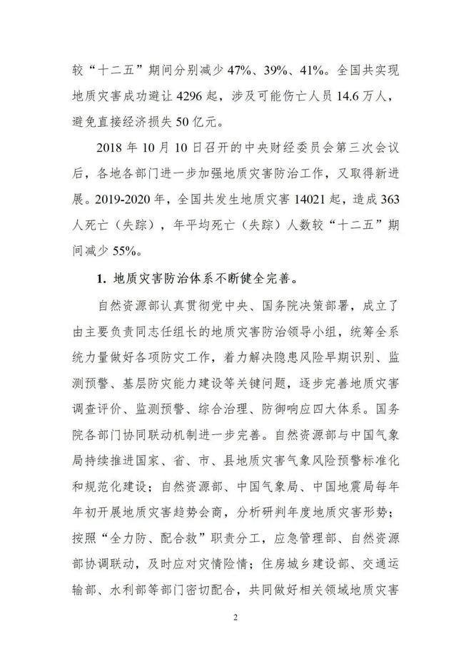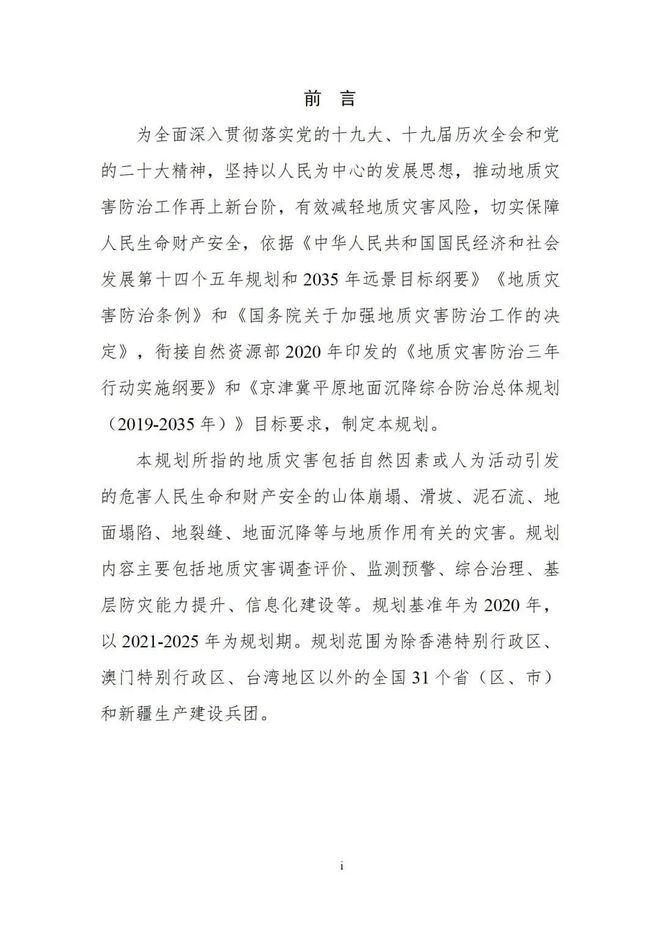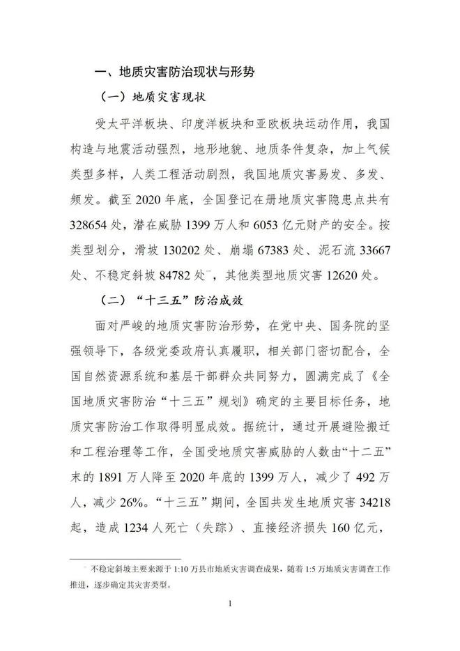 自然資源部關(guān)于印發(fā)《全國地質(zhì)災(zāi)害防治“十四五”規(guī)劃》的通知