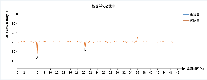 智能學(xué)習(xí)功能可根據(jù)歷史加藥數(shù)據(jù)自動(dòng)學(xué)習(xí),糾正當(dāng)下的加藥偏差,達(dá)到加藥精準(zhǔn)穩(wěn)定。即使出現(xiàn)人為誤操作,加藥實(shí)際值發(fā)生偏差,通過智能學(xué)習(xí)程序系統(tǒng)會自動(dòng)修正實(shí)際加藥量,恢復(fù)到設(shè)定的加藥量。