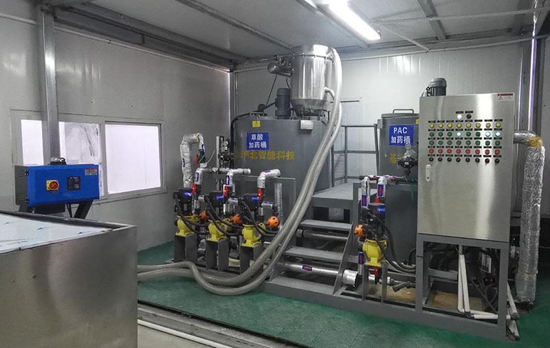 智能反饋功能可根據(jù)出水 SS 、 PH 等相關(guān)指標(biāo)的高低來判斷加藥量是否合適,若實(shí)際出水監(jiān)測值和設(shè)計(jì)值出現(xiàn)較大偏差,程序會自動(dòng)修正加藥量,達(dá)到合理的出水指標(biāo)。